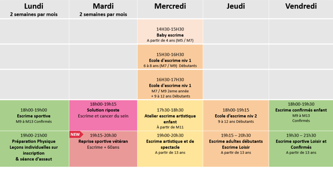 Avant de s'inscrire à Aucamville Escrime nous vous invitons à réaliser deux cours d'essai sur l'un des créneaux correspondant à votre profil et vos envies.